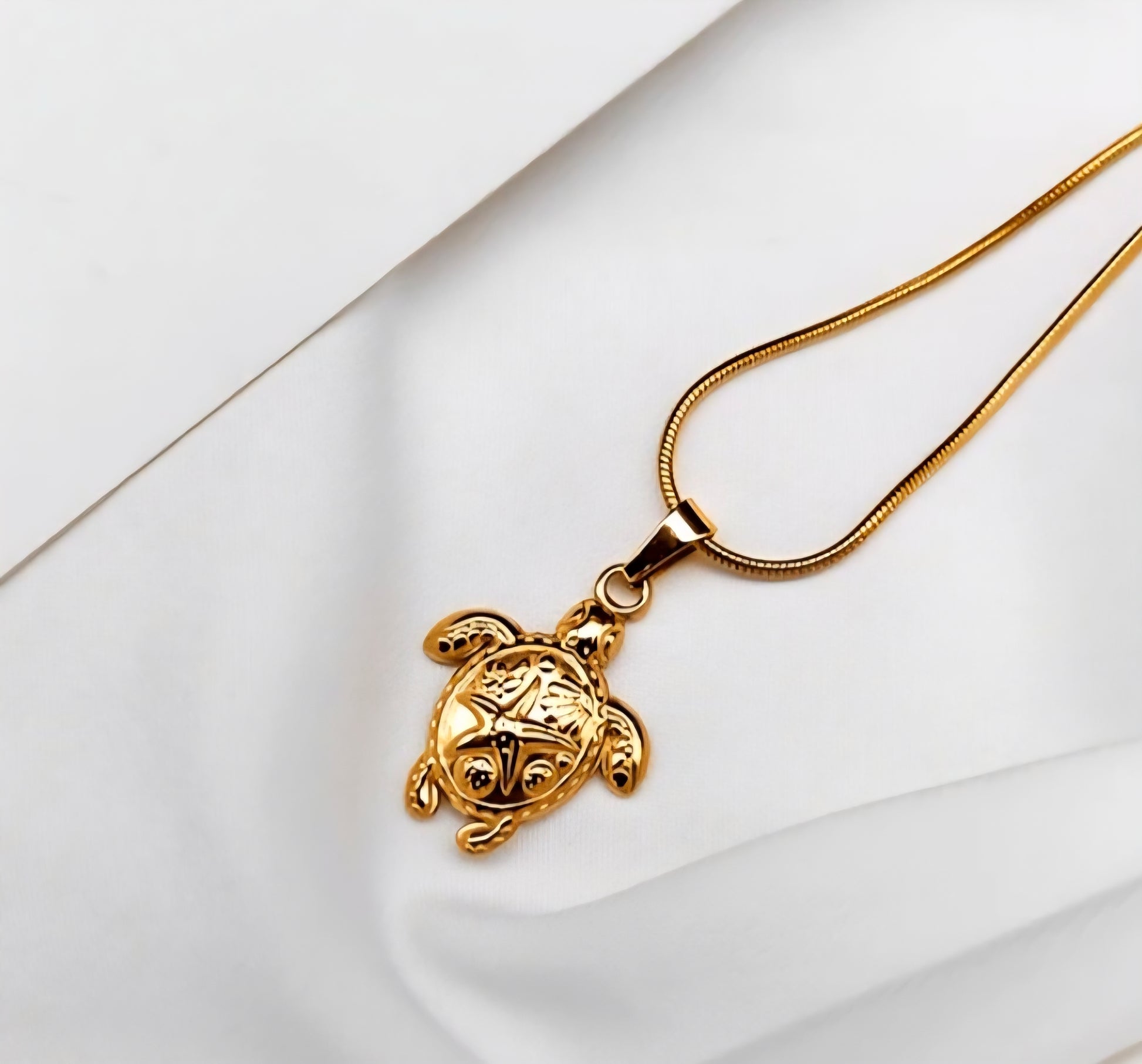 Invite prosperity into your life with this shimmering Fengshui turtle necklace, a timeless symbol of wisdom and good fortune. Crafted with anti-tarnish golden finish, this elegant piece maintains its radiant glow through everyday wear. The turtle's protective energy is believed to bring stability and abundance, making it the perfect companion for those seeking a little extra luck. Whether you're a Fengshui enthusiast or simply drawn to meaningful jewelry, this necklace blends spiritual symbolism with sophisticated style. Wear it close to your heart and let the ancient wisdom of the turtle guide your journey toward success and serenity.